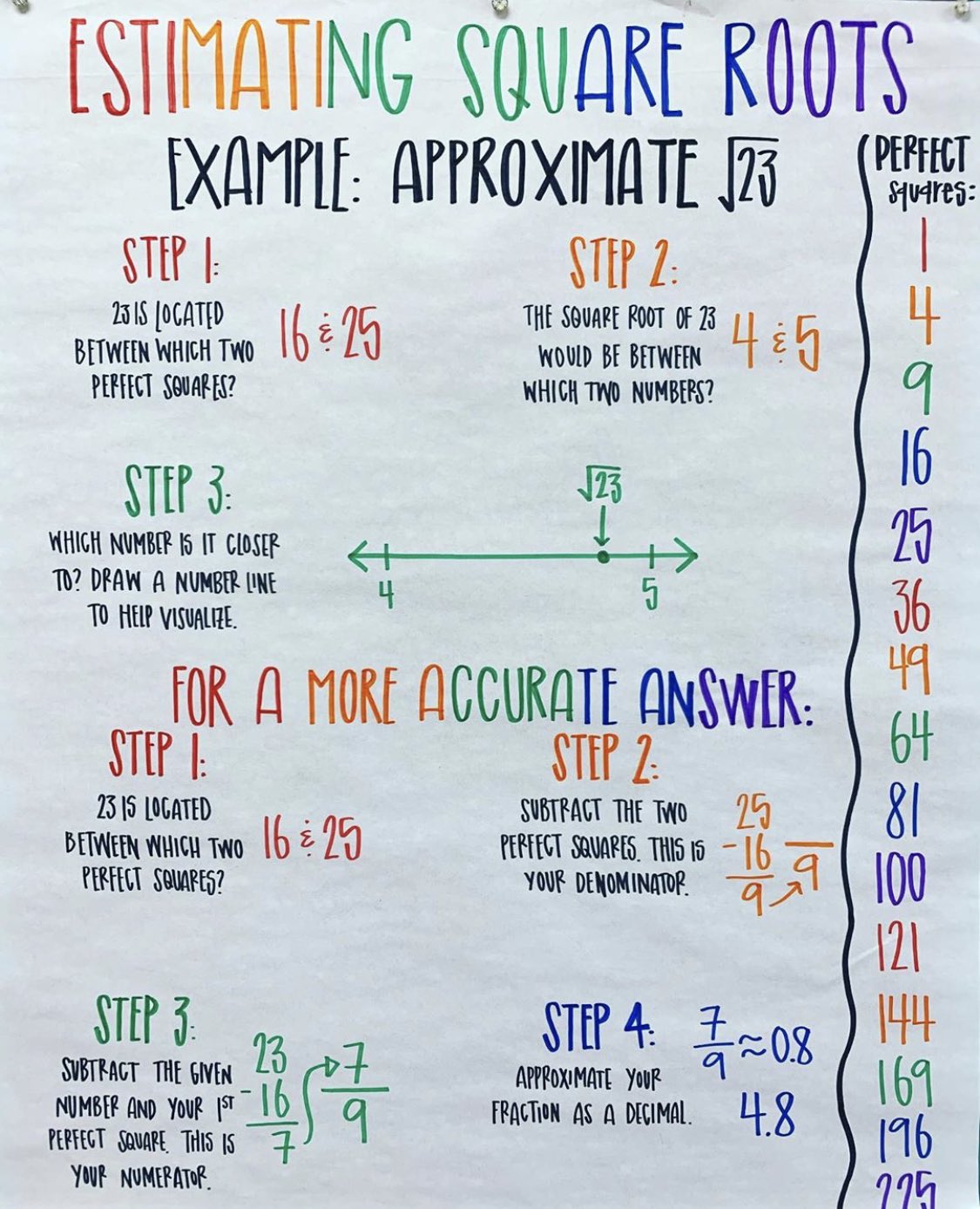 A perfect material to be instantly printed and permanently displayed in the classroom, this chart consists of square roots of the first 25 perfect squares.